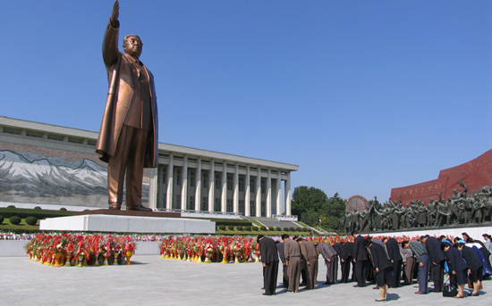 18 μέτρων μπρούντζινου αγάλματος του Κιμ Ιλ Σουνγκ, το οποίο κυριαρχεί στην
