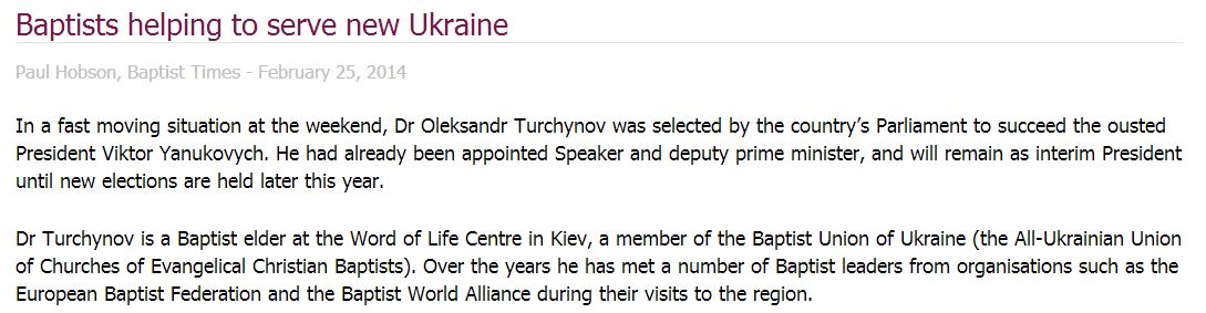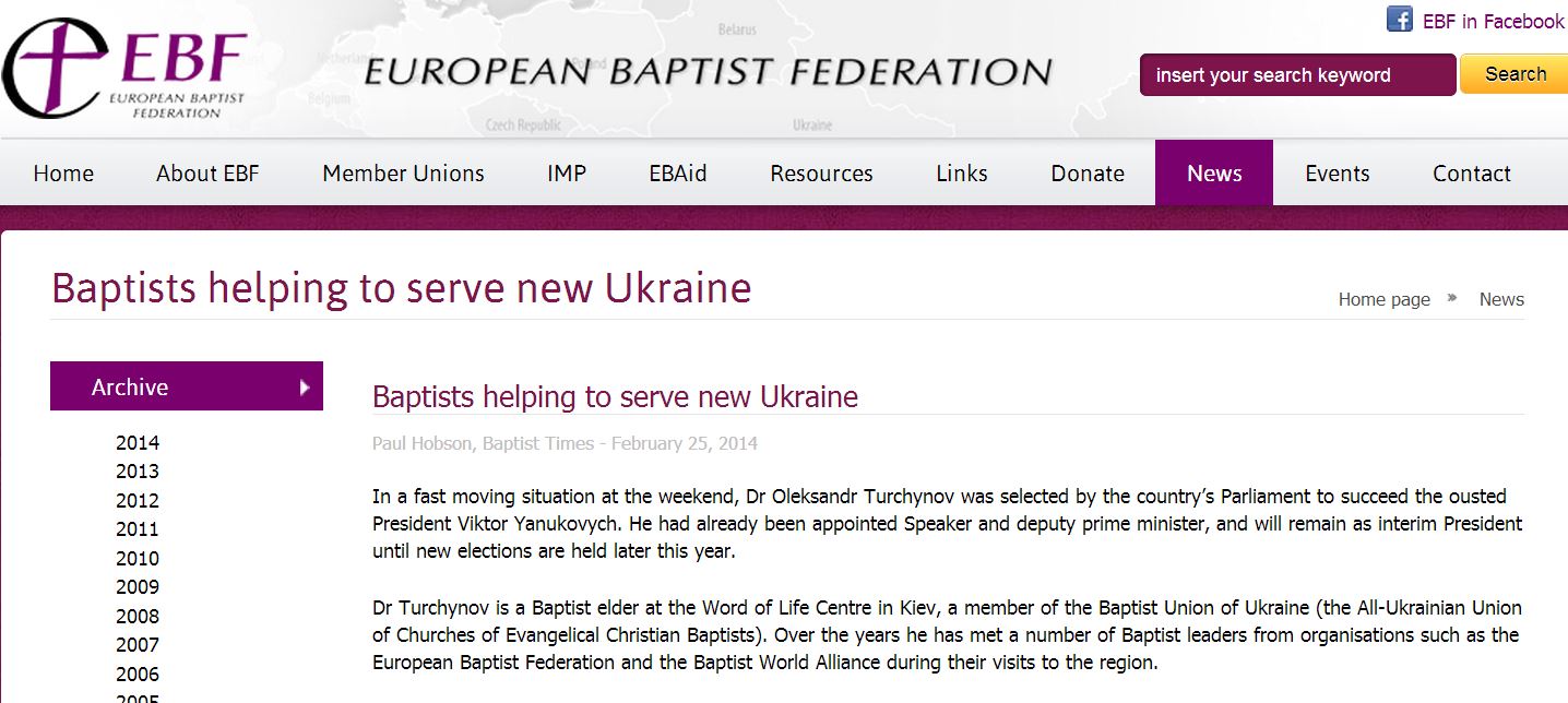 Eυρωπαική Ομοσπονδία των Βαπτιστών βλέπει στην εκλογή του Turchynov μια