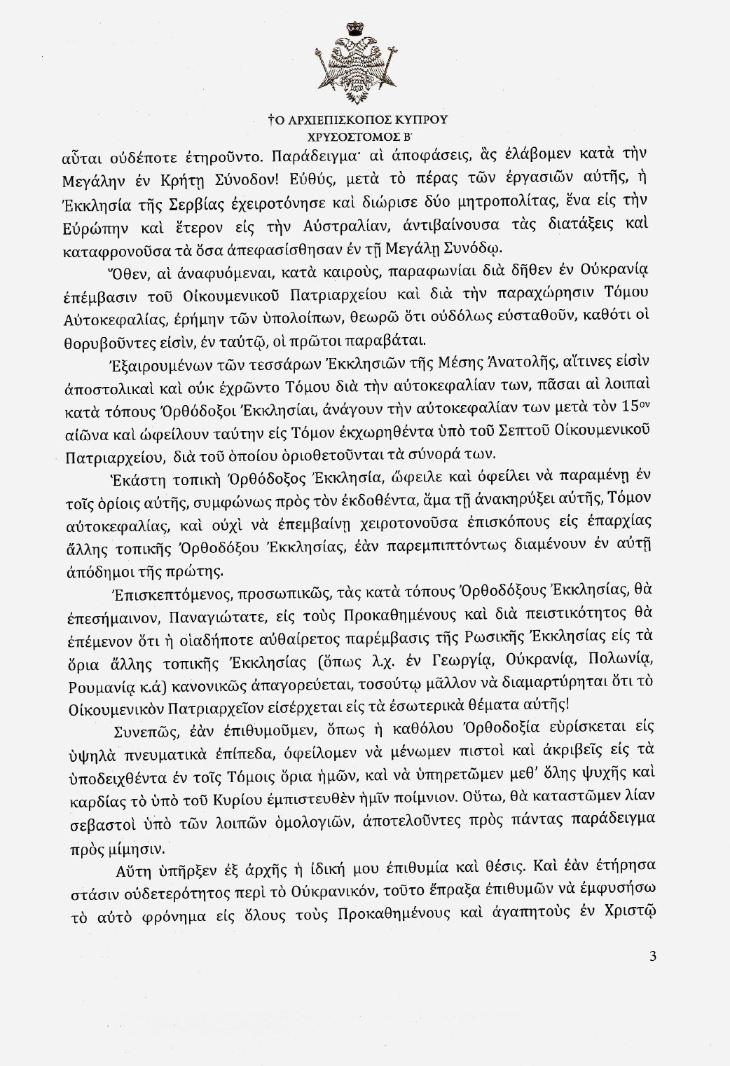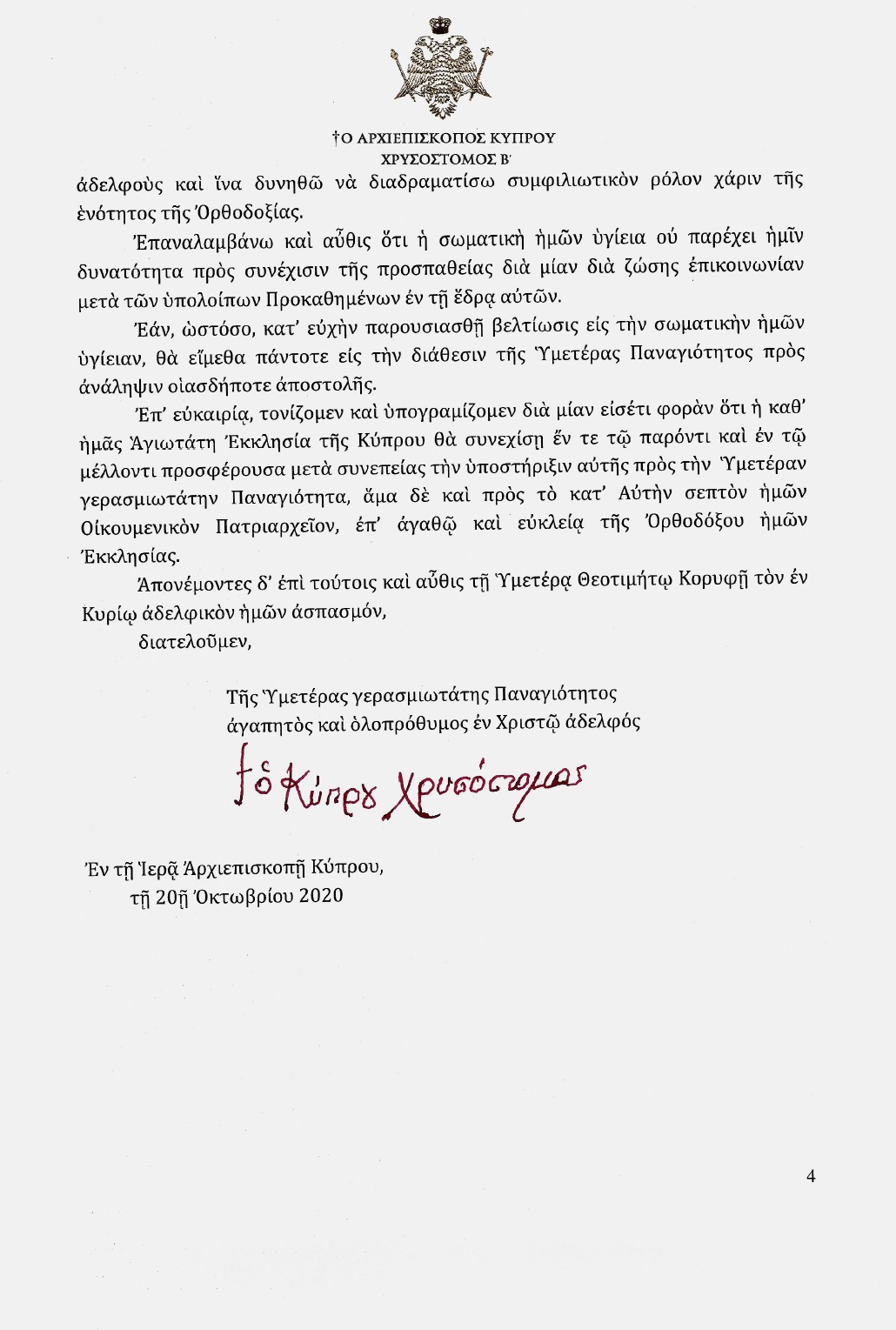 Αρχιεπισκοπή Κύπρου η επιστολή του Αρχιεπισκόπου Κύπρου κ.κ. Χρυσοστόμου, προς