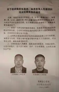 Την ίδια περίοδο, οι αρχές εξέδωσαν εντάλματα σύλληψης με αμοιβή για δύο γνωστούς Χριστιανούς ηγέτες: τον 58χρονο Lin Enzhao και τον 54χρονο Lin Enci. Τους χαρακτήρισαν «κύριους υπόπτους εγκληματικής οργάνωσης» και κατηγορούνται για «πρόκληση φιλονικιών και αναστάτωση της τάξης» – μια αόριστη κατηγορία που χρησιμοποιείται συχνά εναντίον διαφωνούντων. Προσφέρουν αμοιβή 1.000 έως 5.000 γουάν για πληροφορίες, χωρίς να διευκρινίζουν συγκεκριμένα εγκλήματα.